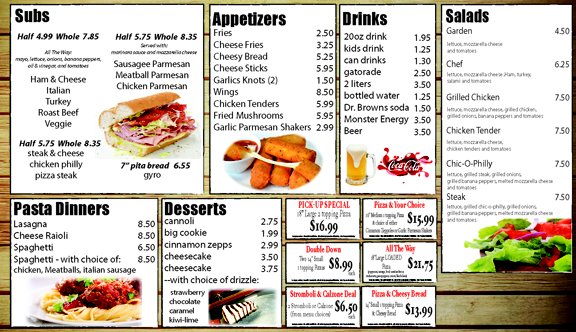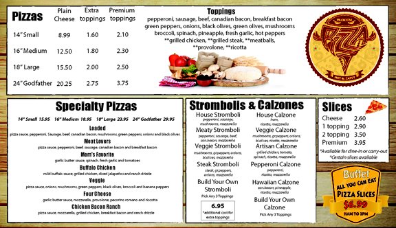Introducing the menu at Michaelangelos Pizza in Wilmington, NC, where you can indulge in authentic Italian pizzas with a variety of toppings. The plain cheese pizza, known as "The Godfather", comes in large, medium, and small sizes, catering to your appetite. Additional toppings such as pepperoni, sausage, and veggies can be customized to your liking. If you're feeling indulgent, premium toppings like grilled chicken and provolone are also available. Customers rave about the thin crust and generous portions, making it perfect for groups or family dinners. The friendly staff and prompt delivery service ensure a great dining experience. Whether you opt for dine-in or takeout, Michaelangelos Pizza is a must-try for pizza lovers looking for quality and flavor in every bite.